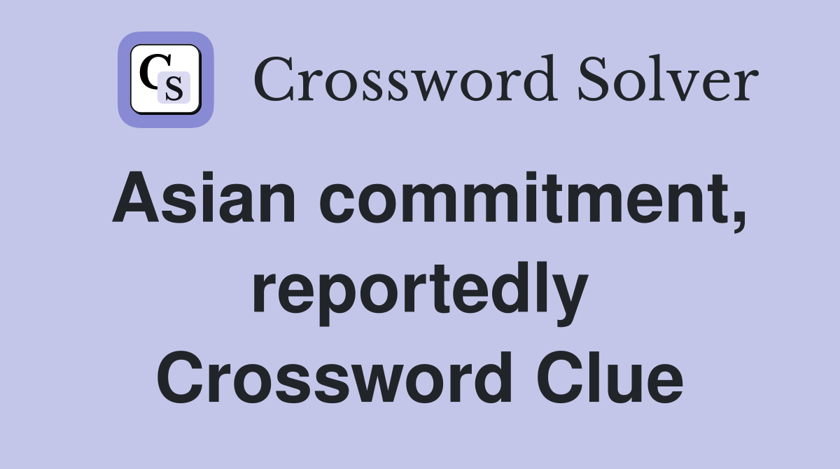 Asian commitment reportedly Crossword Clue Answers Crossword Solver