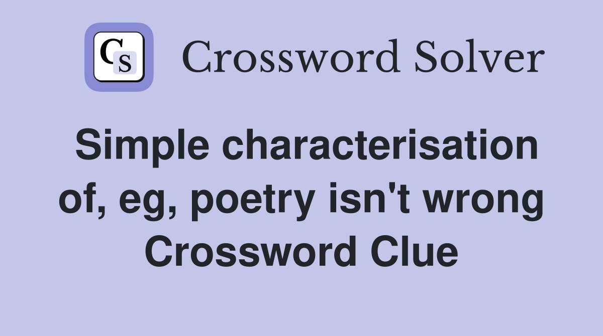 Simple characterisation of eg poetry isn #39 t wrong Crossword Clue