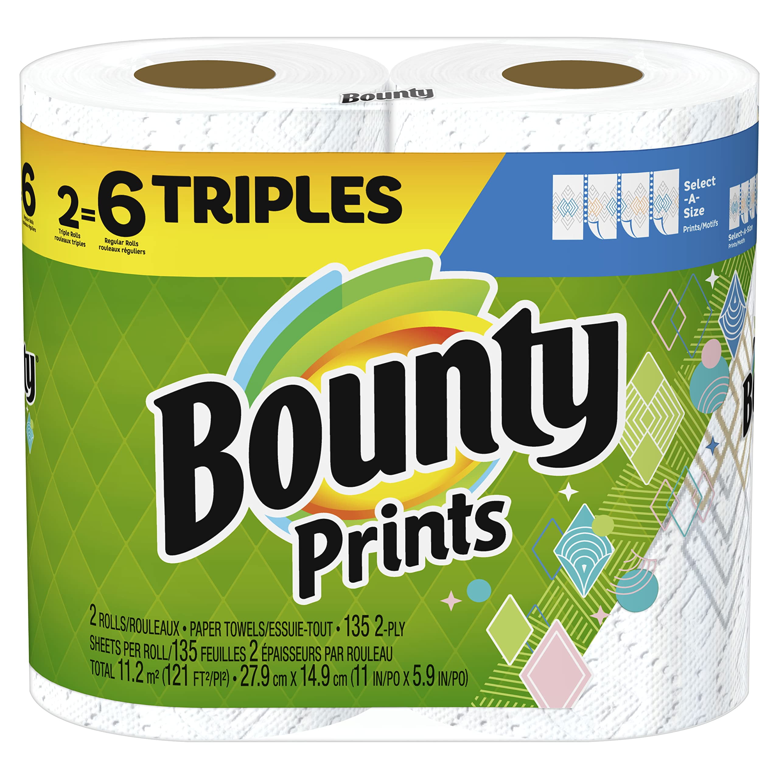 Bounty Select A Size Paper Towels Print Design 2 Triple Rolls = 6