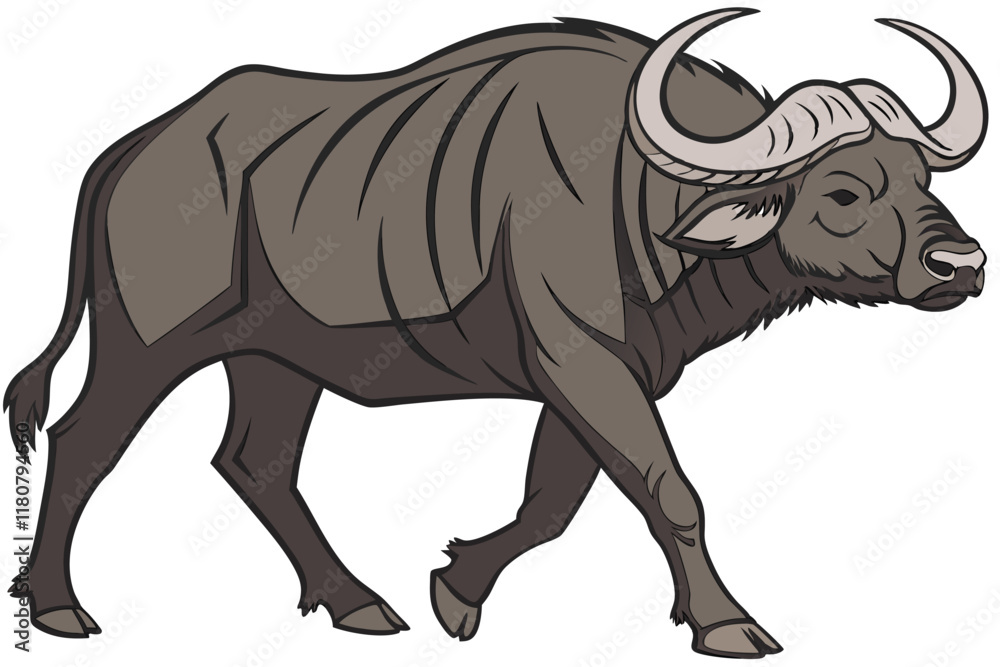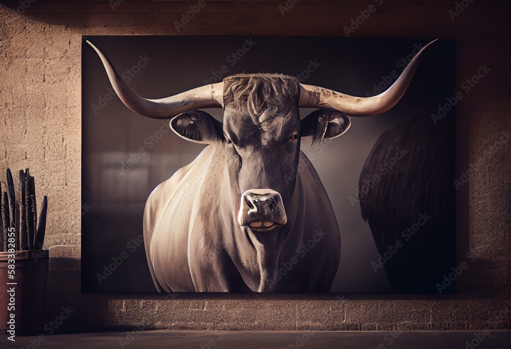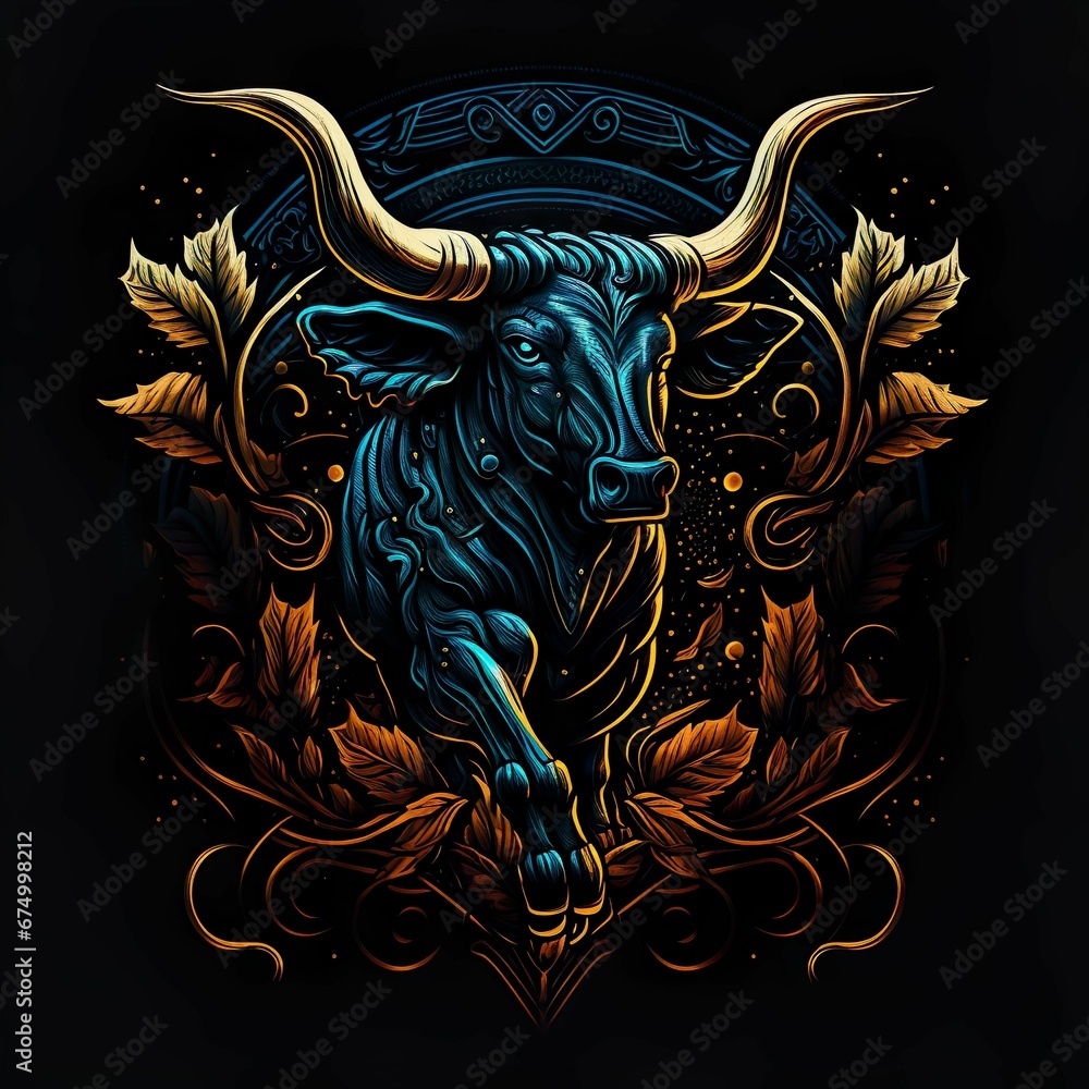 AI Generated Illustration of a Majestic Bovine with Curved Horns and a