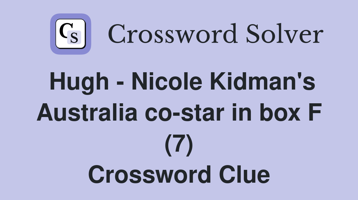 Hugh Nicole Kidman #39 s Australia co star in box F (7) Crossword Clue