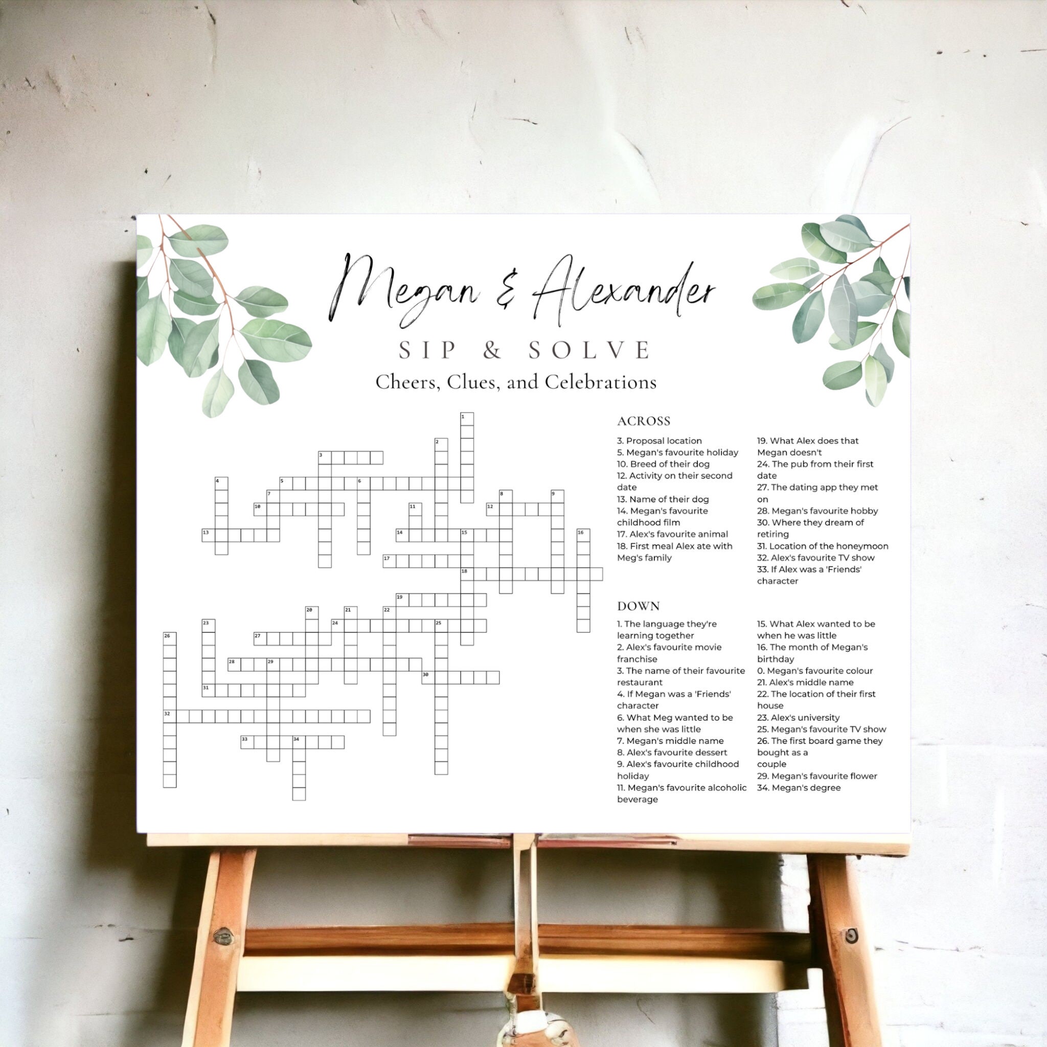 Elegant Wedding Crossword Puzzle Sage Green Wedding Custom Etsy