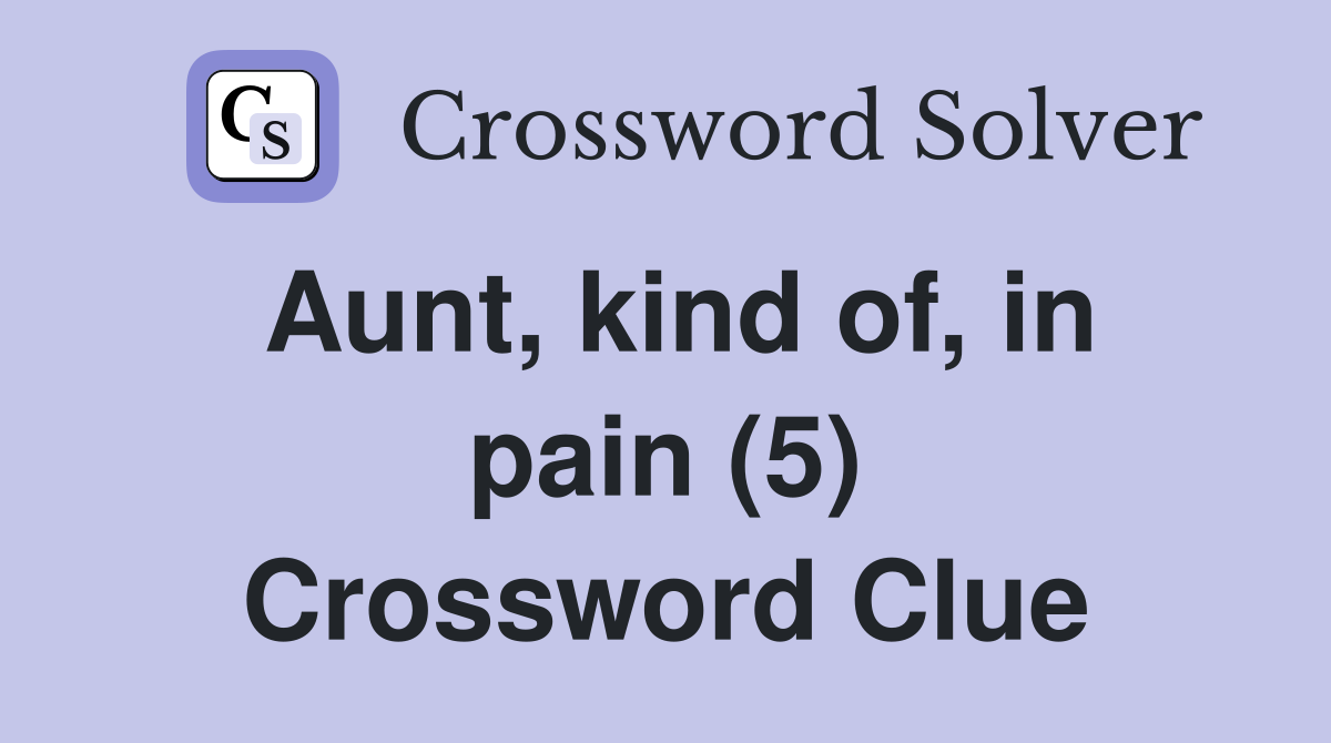 Aunt kind of in pain (5) Crossword Clue Answers Crossword Solver