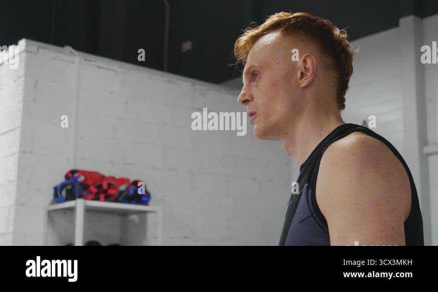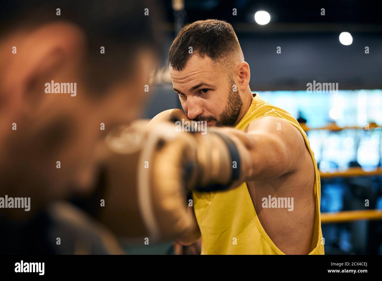 Concentrated professional boxer training gym hi res stock photography