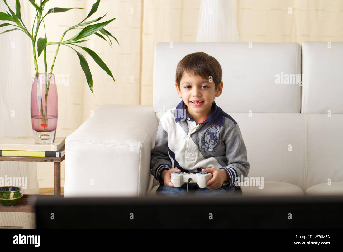 Cute Young Boy Laying On The Floor Looking Bored del colaborador de