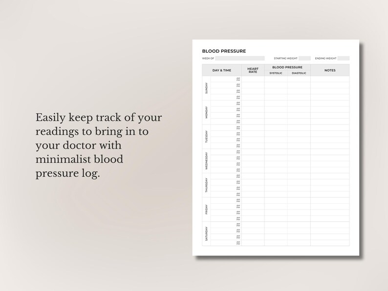 Blood Pressure Log Printable • Blood Pressure Chart • Blood Pressure