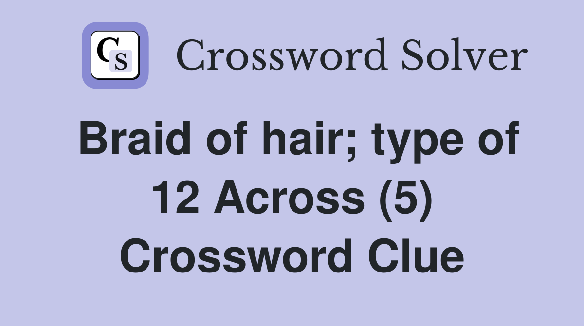 Braid of hair type of 12 Across (5) Crossword Clue Answers