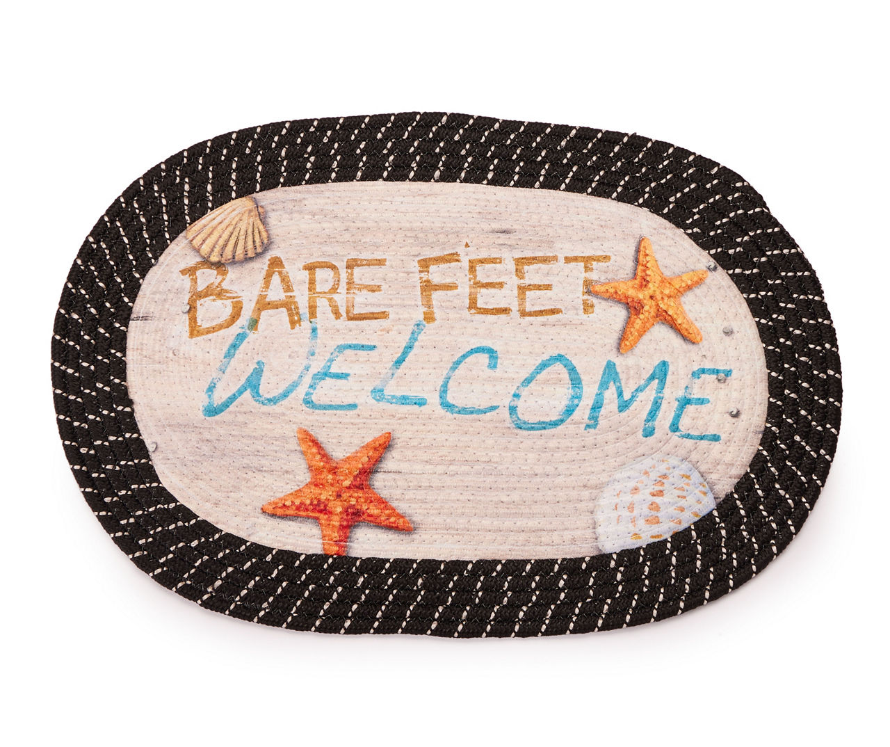quot Bare Feet Welcome quot Beige Black Beach Braided Accent Rug Big Lots