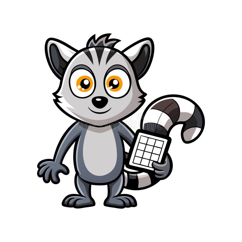Illustration of Restored Lemur Solving Crossword Puzzles Stock Vector