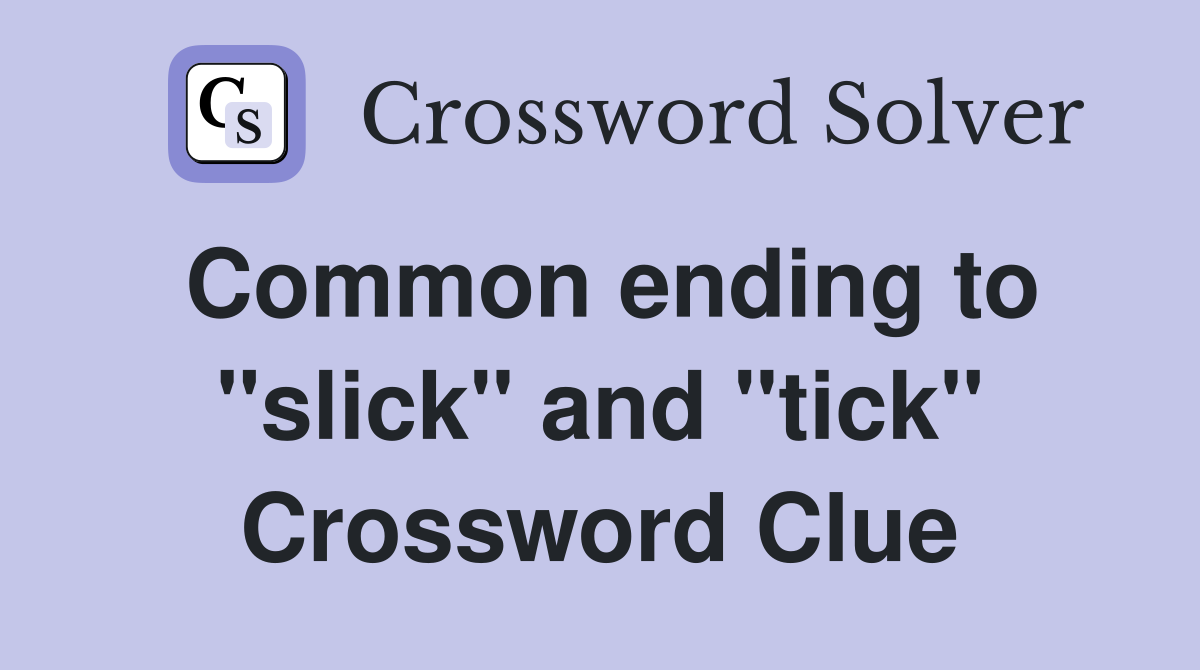 Common ending to quot slick quot and quot tick quot Crossword Clue Answers