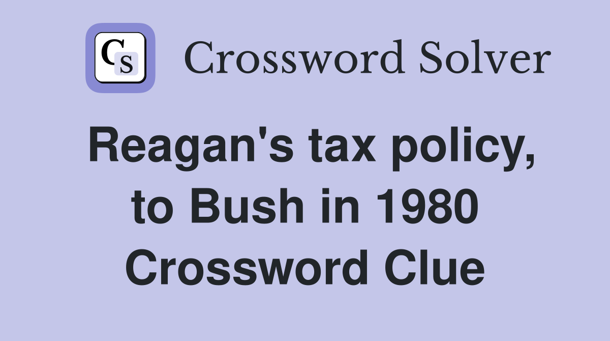 Reagan #39 s tax policy to Bush in 1980 Crossword Clue Answers