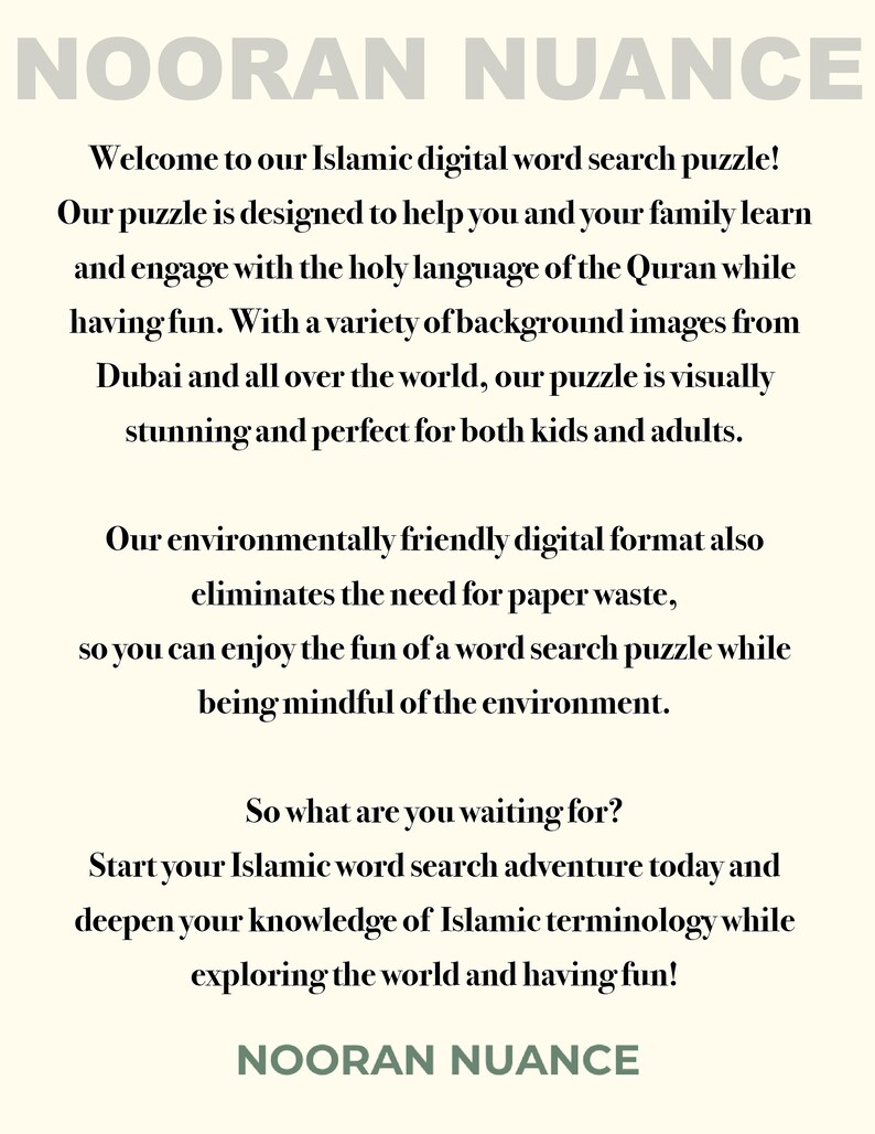Islamic Word Search Crossword Puzzle for All Ages INSTANT DOWNLOAD