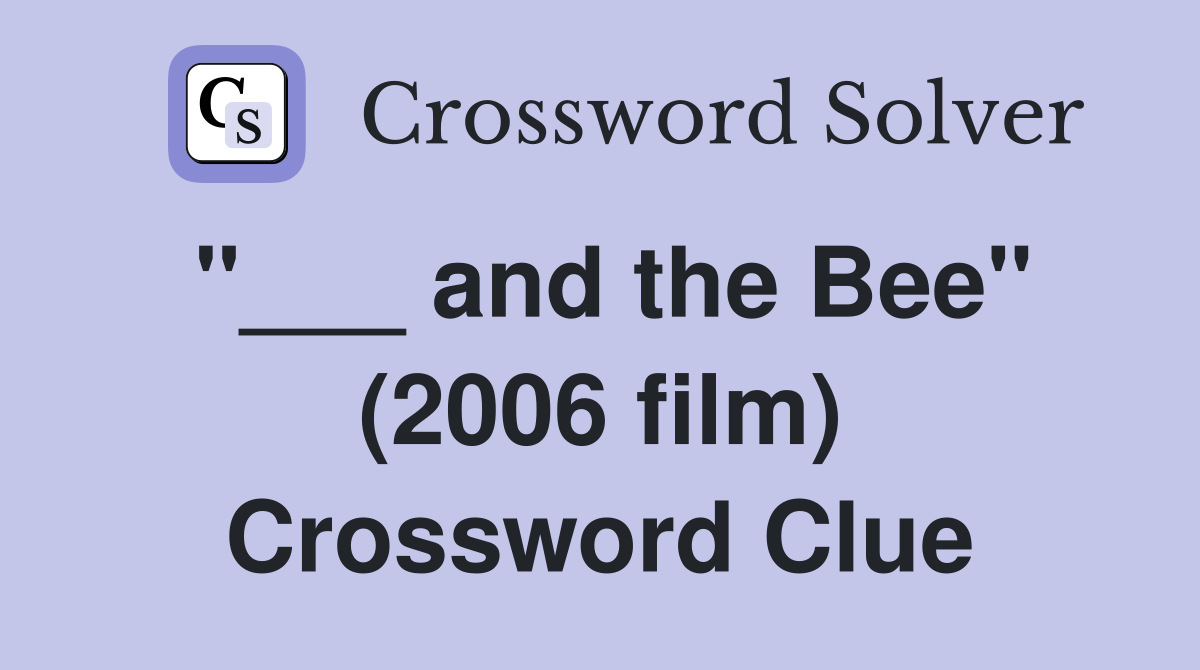 and the Bee quot (2006 film) Crossword Clue Answers Crossword Solver