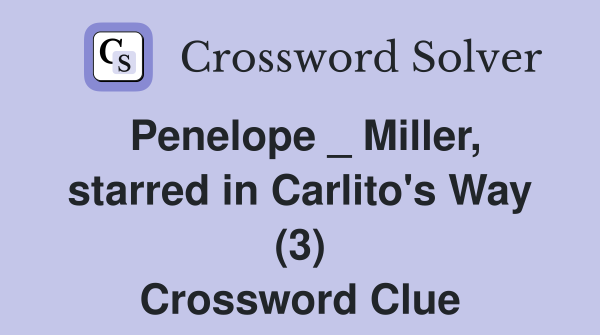 Penelope Miller starred in Carlito #39 s Way (3) Crossword Clue