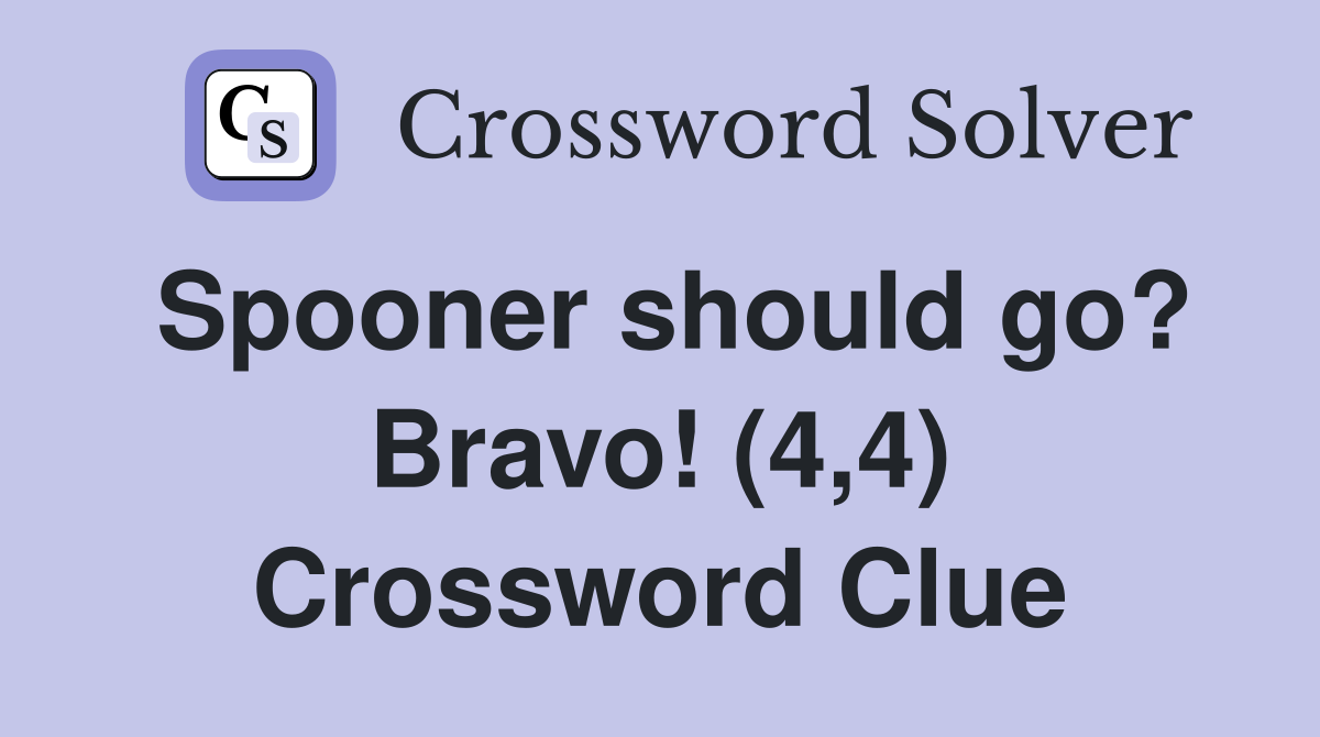 Spooner should go? Bravo (4 4) Crossword Clue Answers Crossword Solver