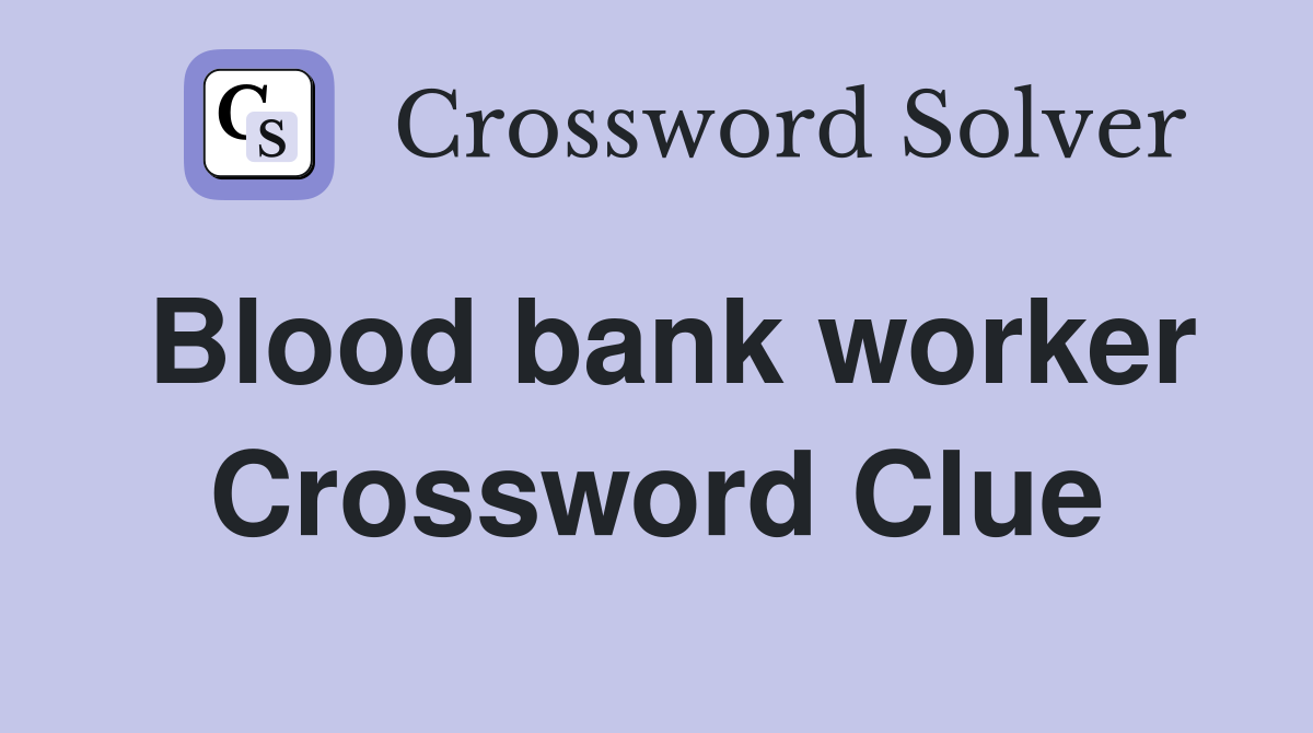 Blood bank worker Crossword Clue Answers Crossword Solver