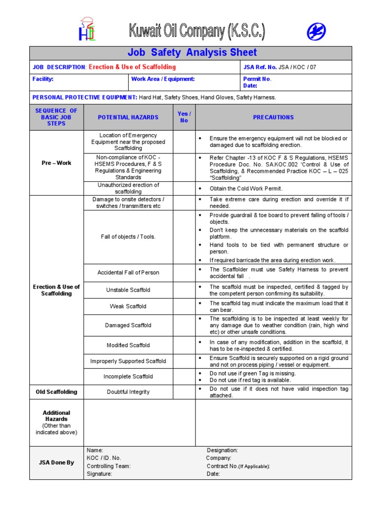 Job Safety Analysis Sheet:Use of Scaffolding PDF