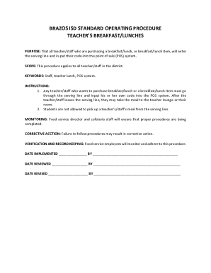 Fillable Online BRAZOS ISD STANDARD OPERATING PROCEDURE IN Fax