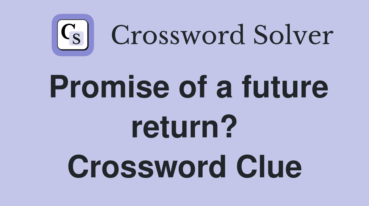 Promise of a future return? Crossword Clue Answers Crossword Solver