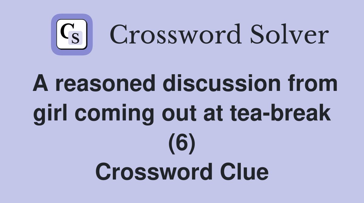 A reasoned discussion from girl coming out at tea break (6) Crossword