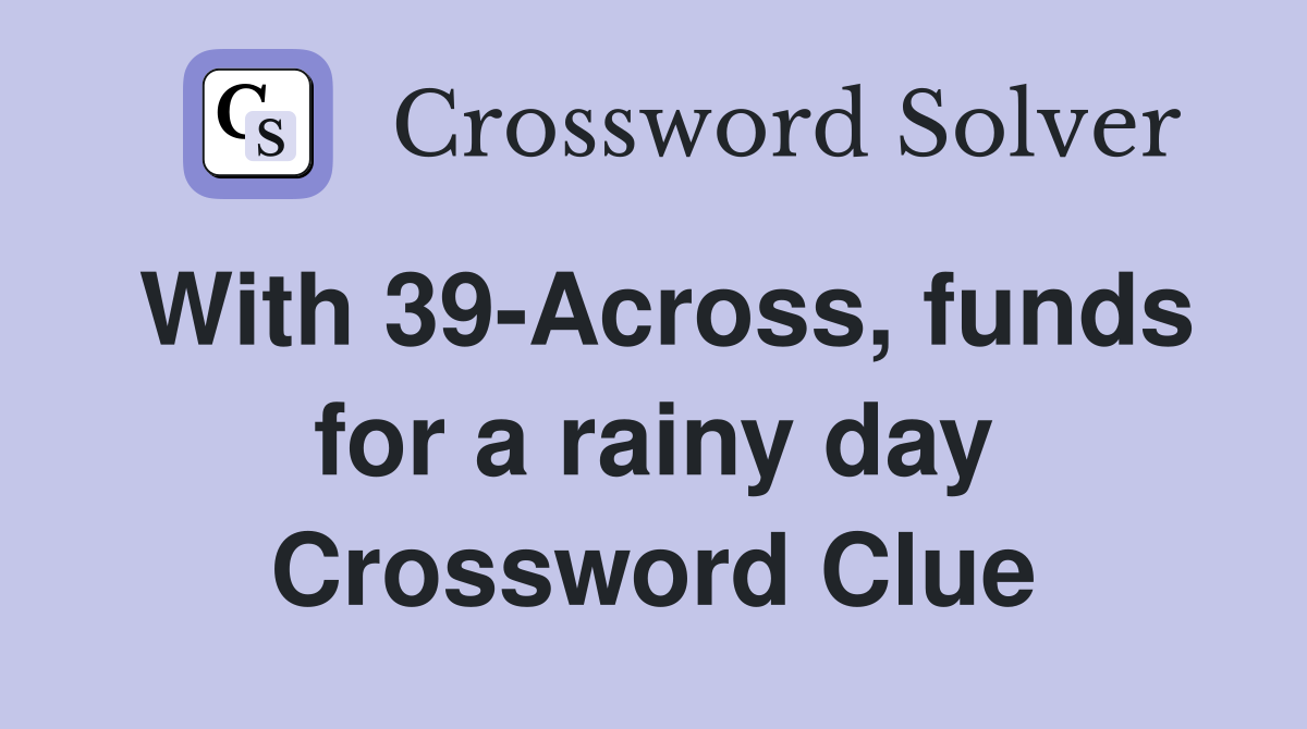 With 39 Across funds for a rainy day Crossword Clue Answers