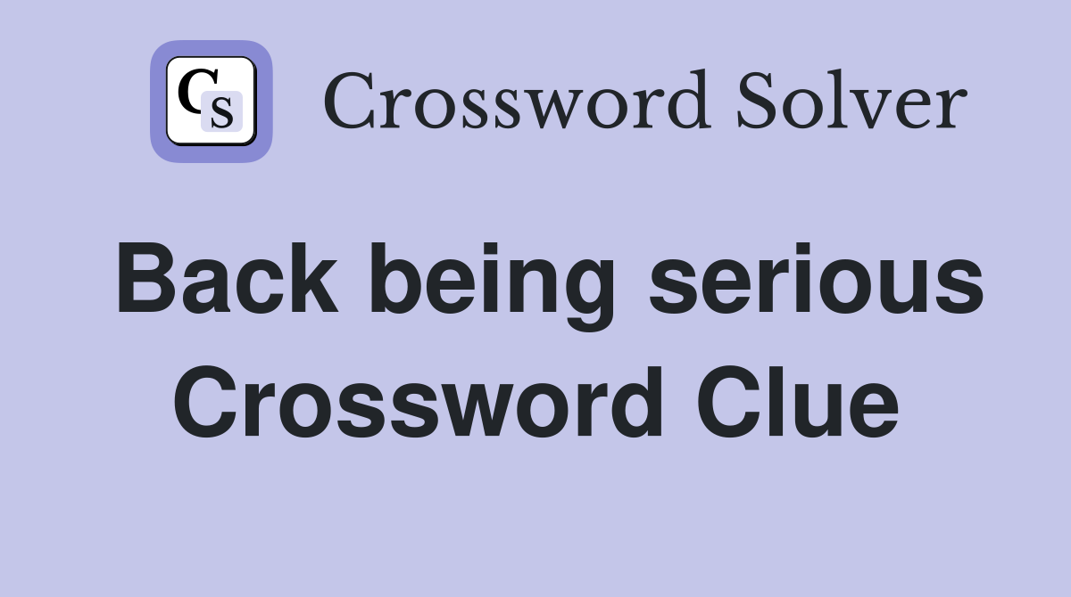 Back being serious Crossword Clue Answers Crossword Solver