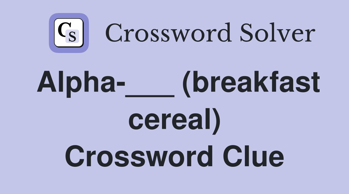 Alpha (breakfast cereal) Crossword Clue Answers Crossword Solver
