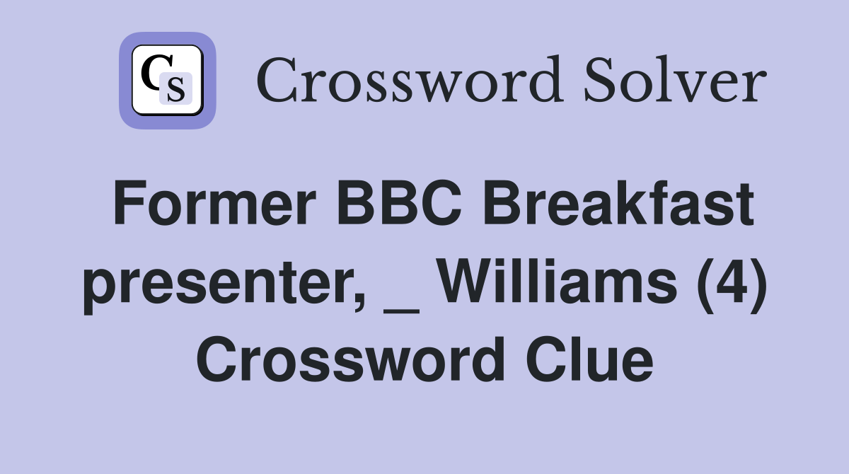 Former BBC Breakfast presenter Williams (4) Crossword Clue Answers