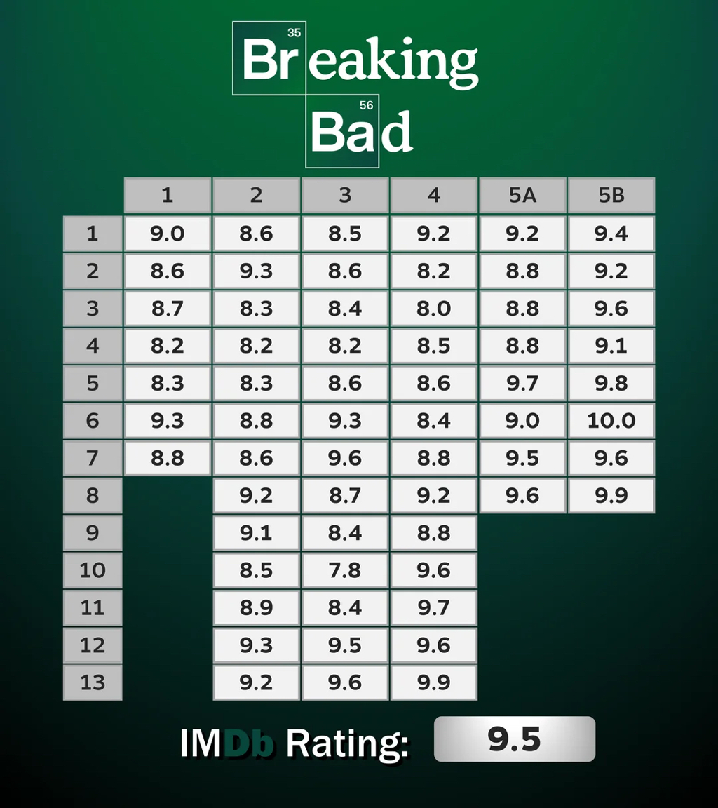 OC Breaking Bad ratings by episode chart : r/dataisbeautiful