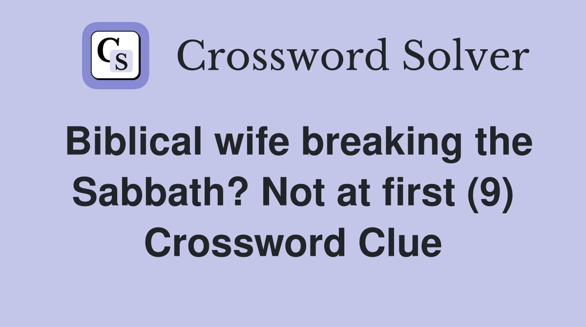 Biblical wife breaking the Sabbath? Not at first (9) Crossword Clue