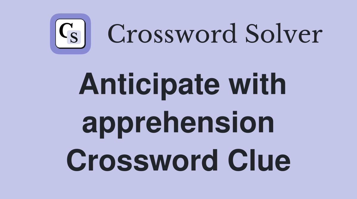 Anticipate with apprehension Crossword Clue Answers Crossword Solver