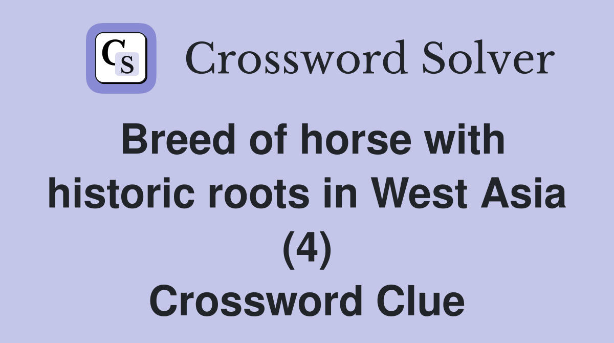 Breed of horse with historic roots in West Asia (4) Crossword Clue