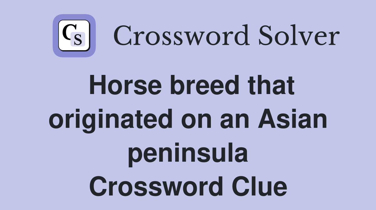 Horse breed that originated on an Asian peninsula Crossword Clue