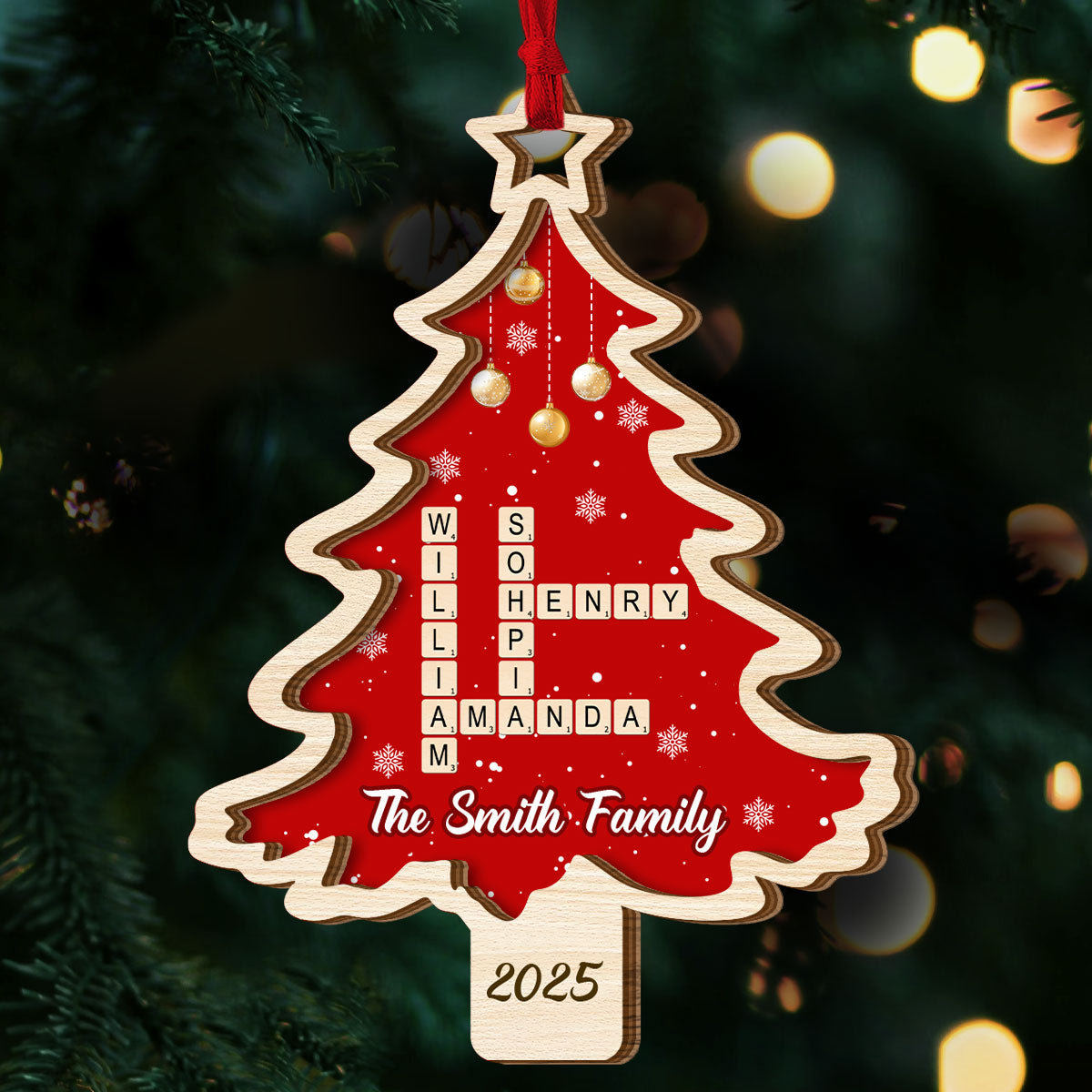 Christmas Tree Family Bestie Crossword Personalized 2 Layered Wooden