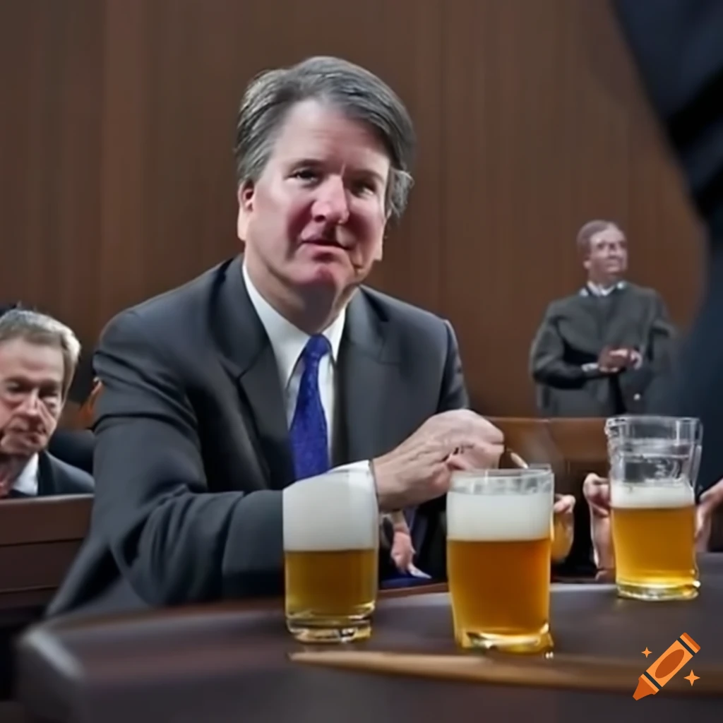 Supreme court judge brett kavanaugh holding a beer on Craiyon