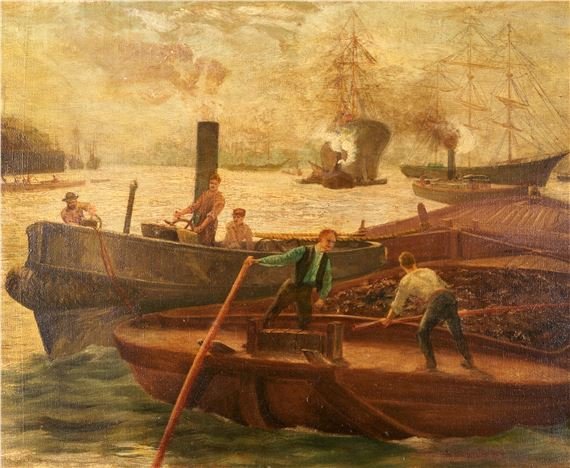 Solve Frederick Usher De Voll Urban Harbor with Workers jigsaw puzzle