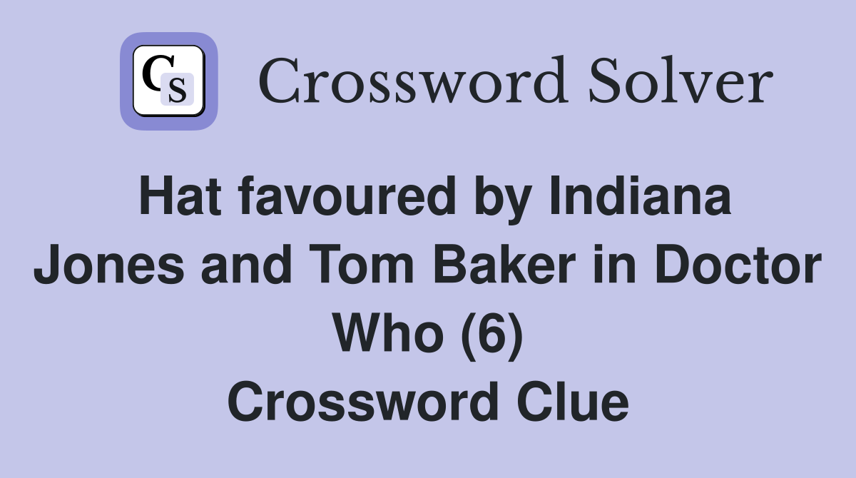 Hat favoured by Indiana Jones and Tom Baker in Doctor Who (6