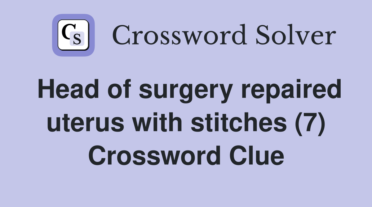Head of surgery repaired uterus with stitches (7) Crossword Clue