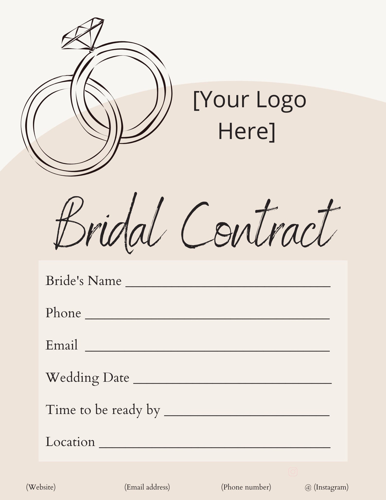 Bridal Hair Contract Template Bridal Contract Contract Template Fre
