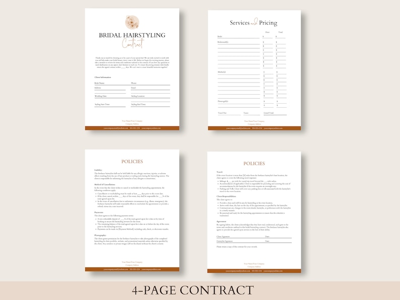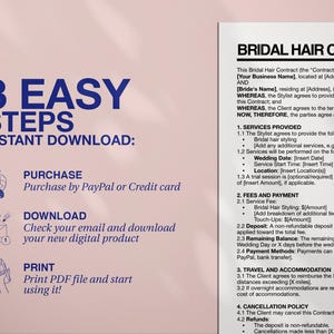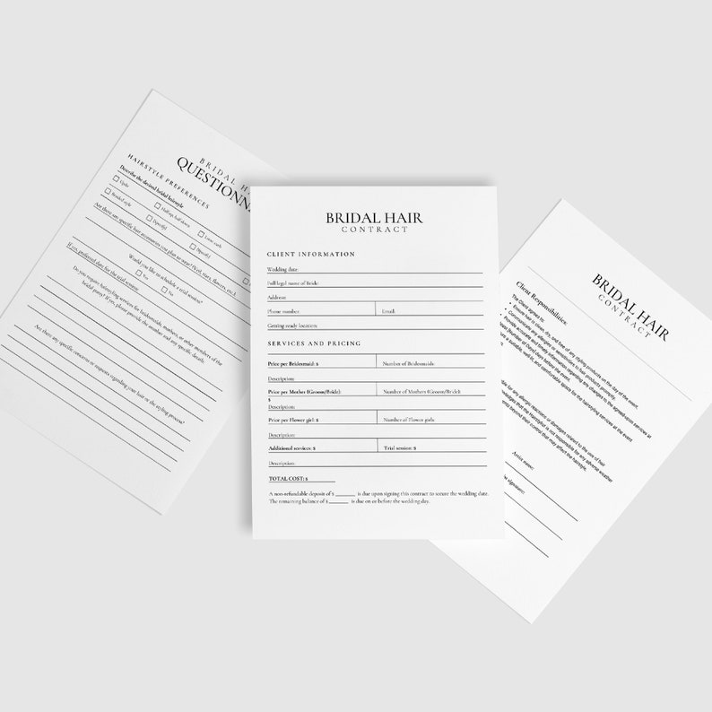 Editable Bridal Hair Contract Template Package Bridal Hairstylist