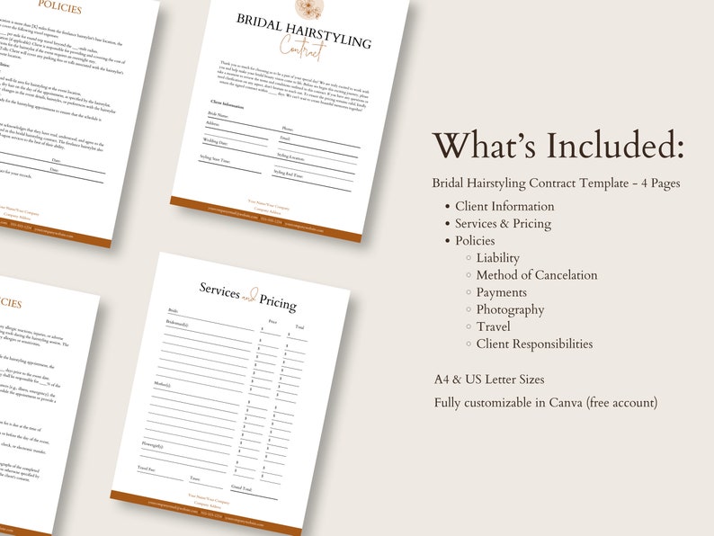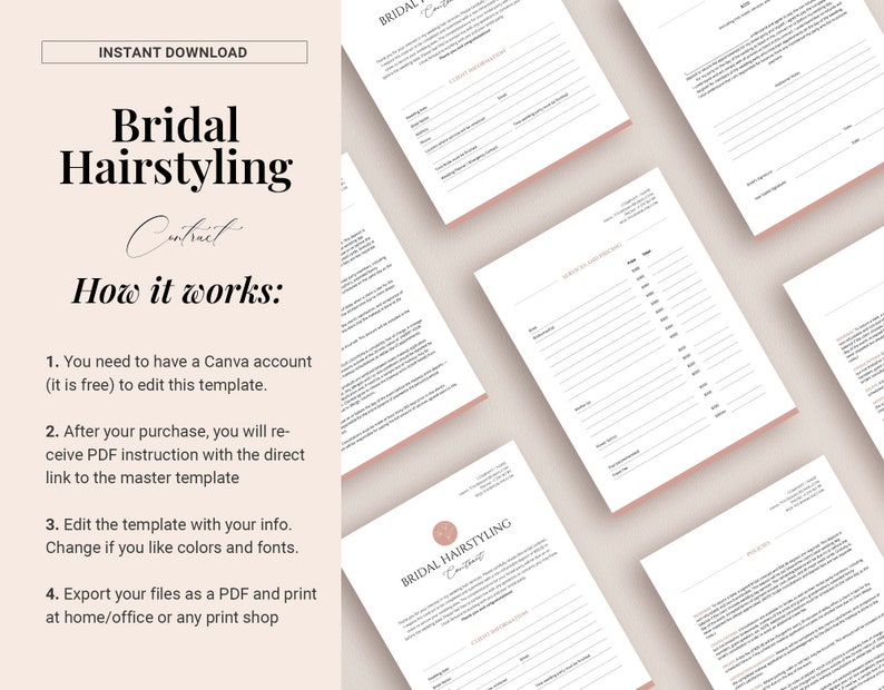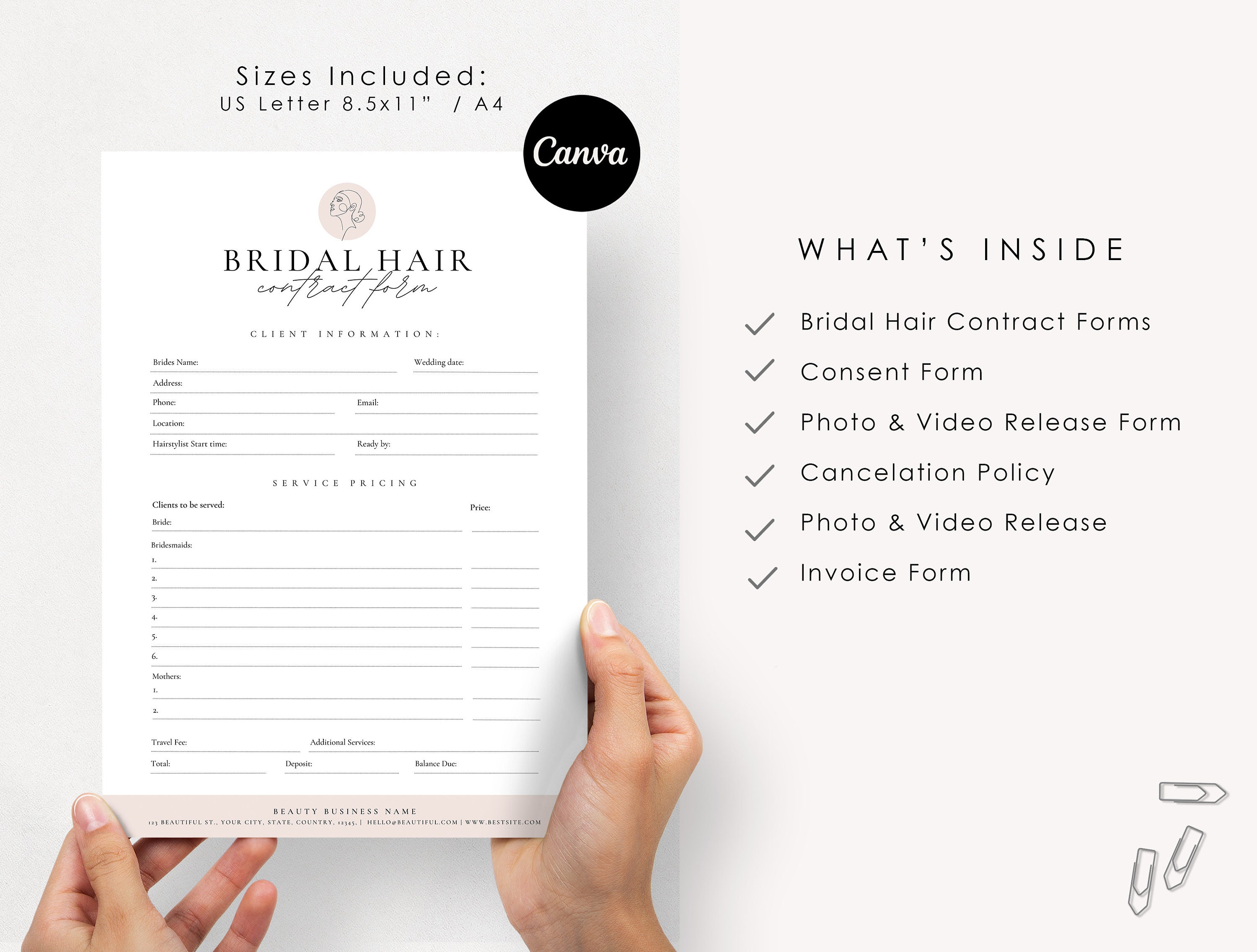 Editable Bridal Hair Contract Template: Hairstylist Form (CANVA) Etsy