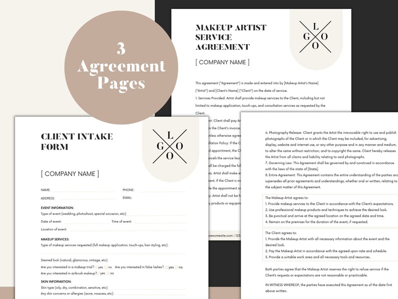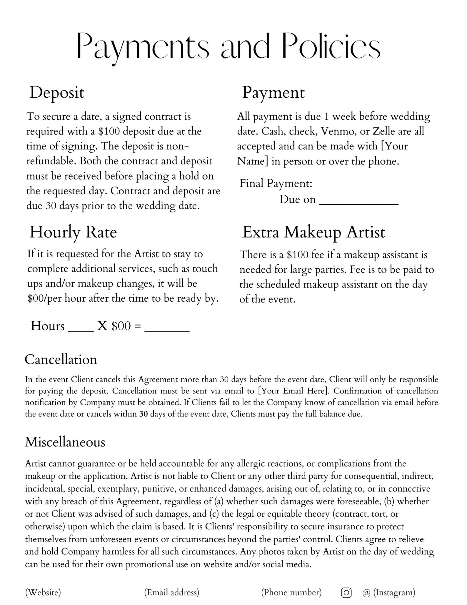 Makeup Contract Template MUA Contract Makeup Artist Forms Bridal