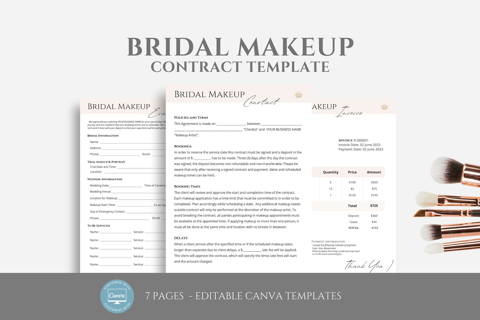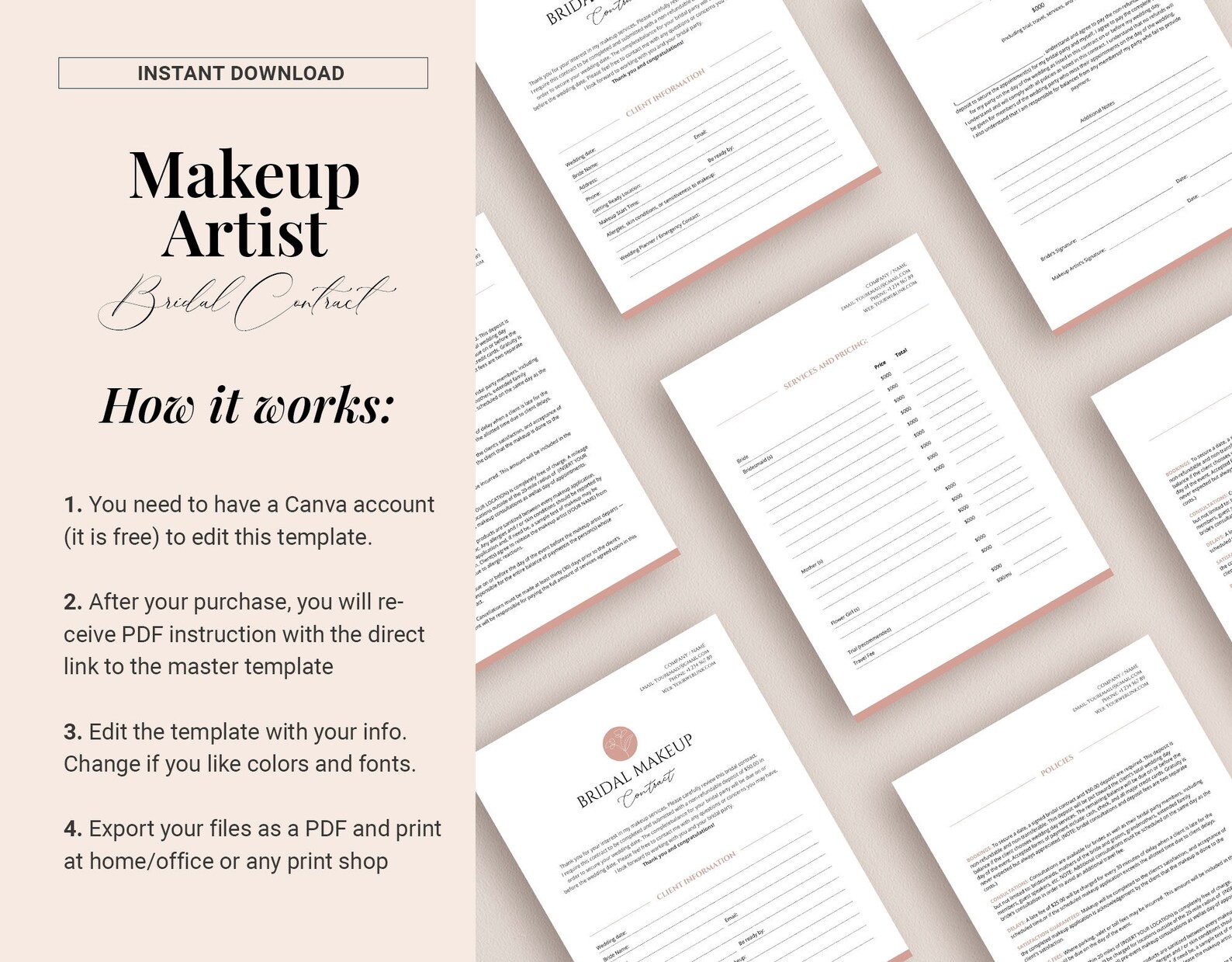 Editable Bridal Makeup Contract Template Makeup Artist Etsy