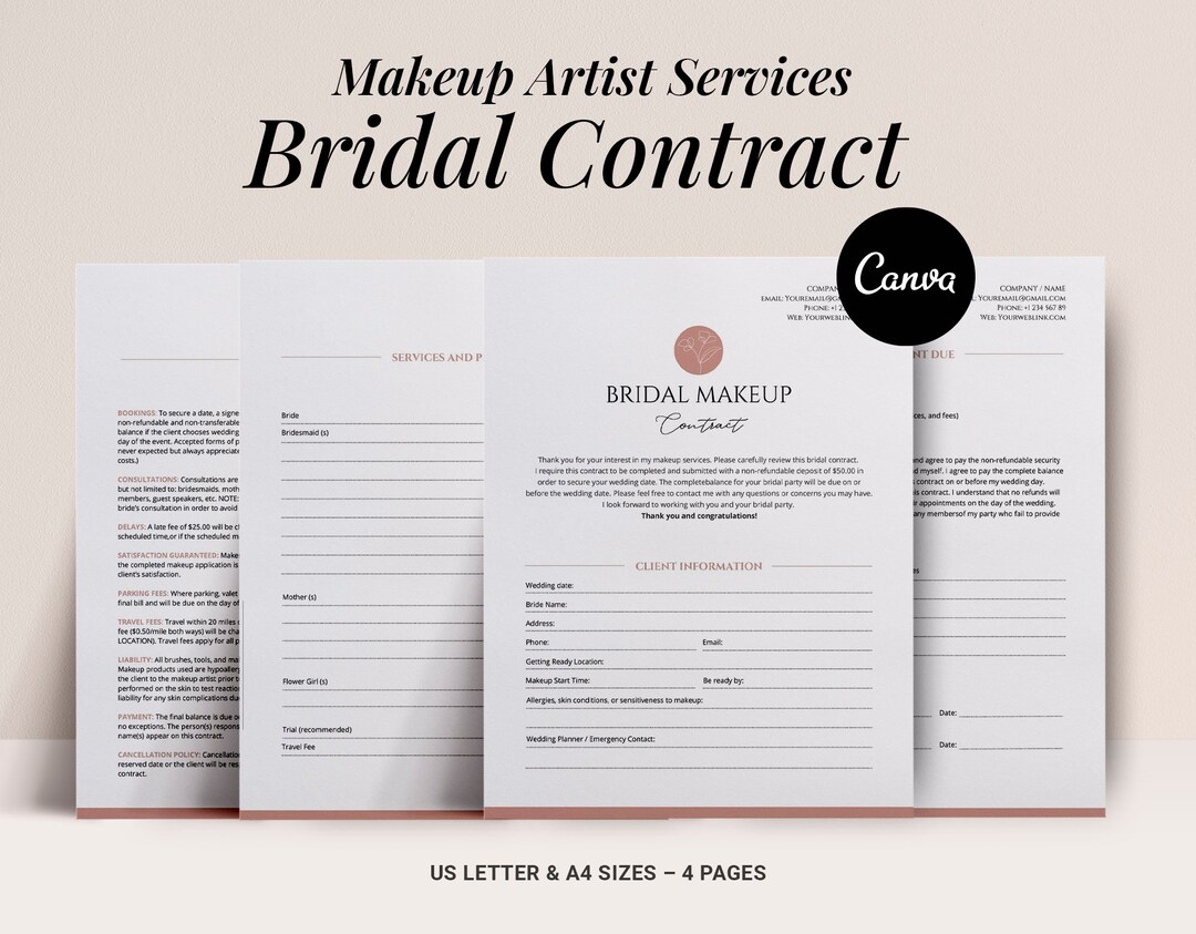 Editable Bridal Makeup Contract Template for Freelance Makeup Etsy