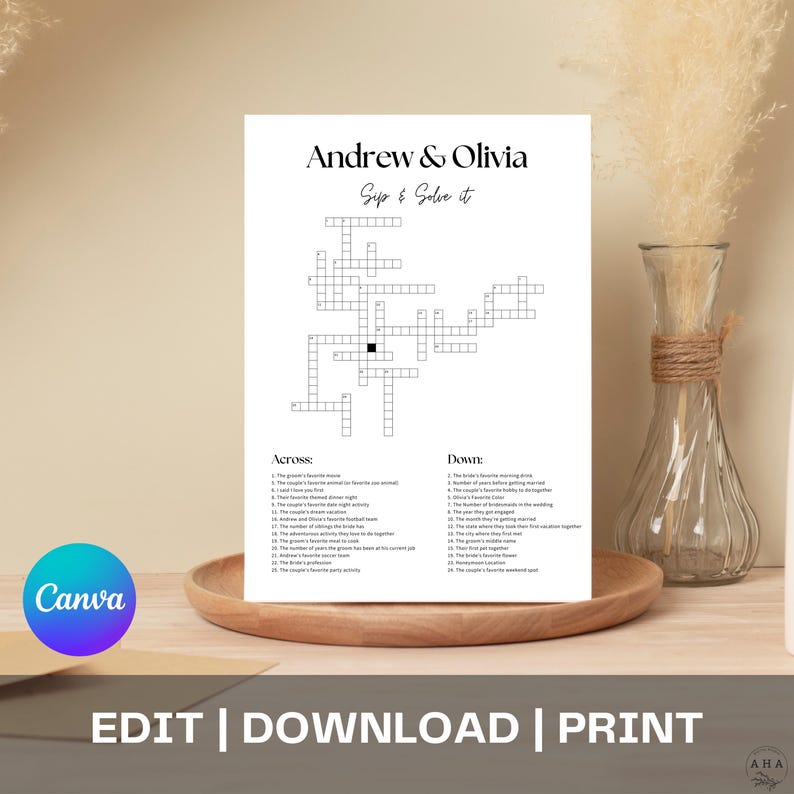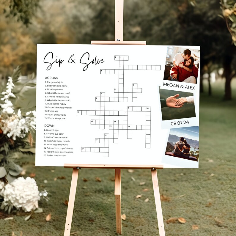 Custom Crossword Puzzle Wedding Template Sip and Solve Wedding
