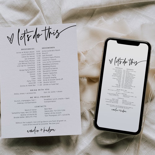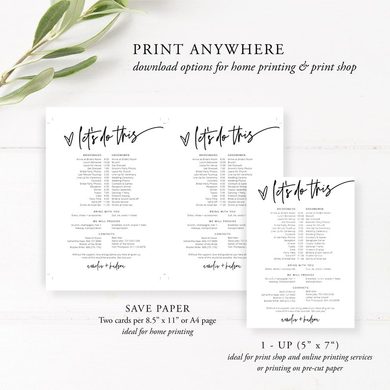 Editable Bridal Party Timeline Template Minimalist Wedding Day