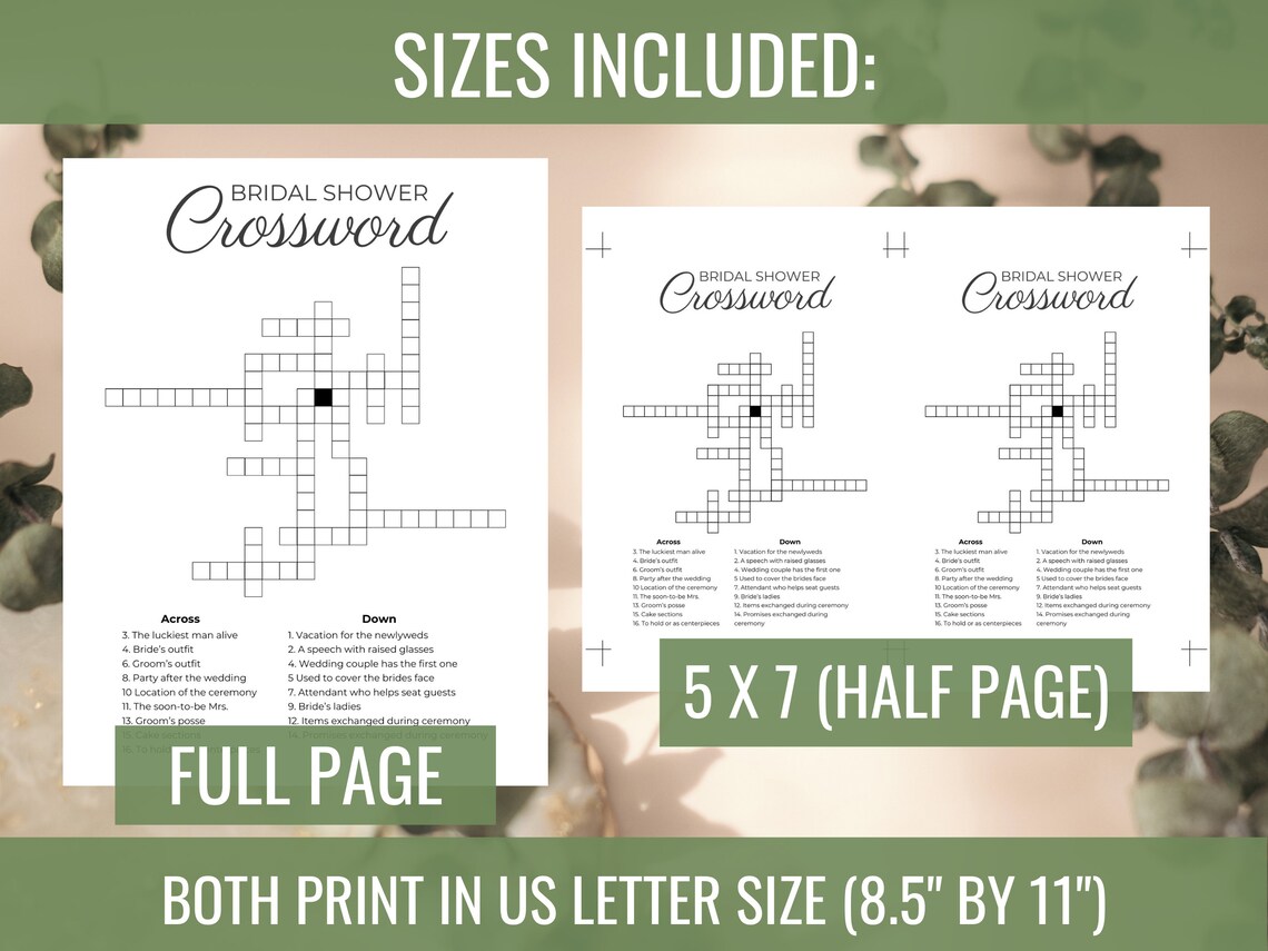 Bridal Shower Crossword Puzzle Wedding Crossword Puzzle Etsy