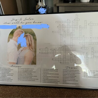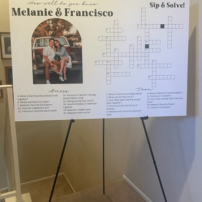 Custom Wedding Crossword Puzzle Poster Board Printed Sip and Solve