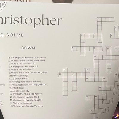 DIY Custom Wedding Crossword Puzzle Personalized Bridal Shower