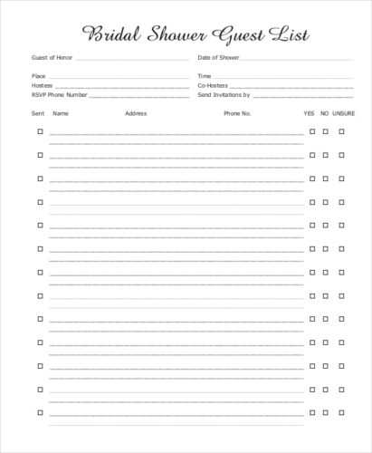 21 Free Bridal Shower Guest List Templates Office Templates
